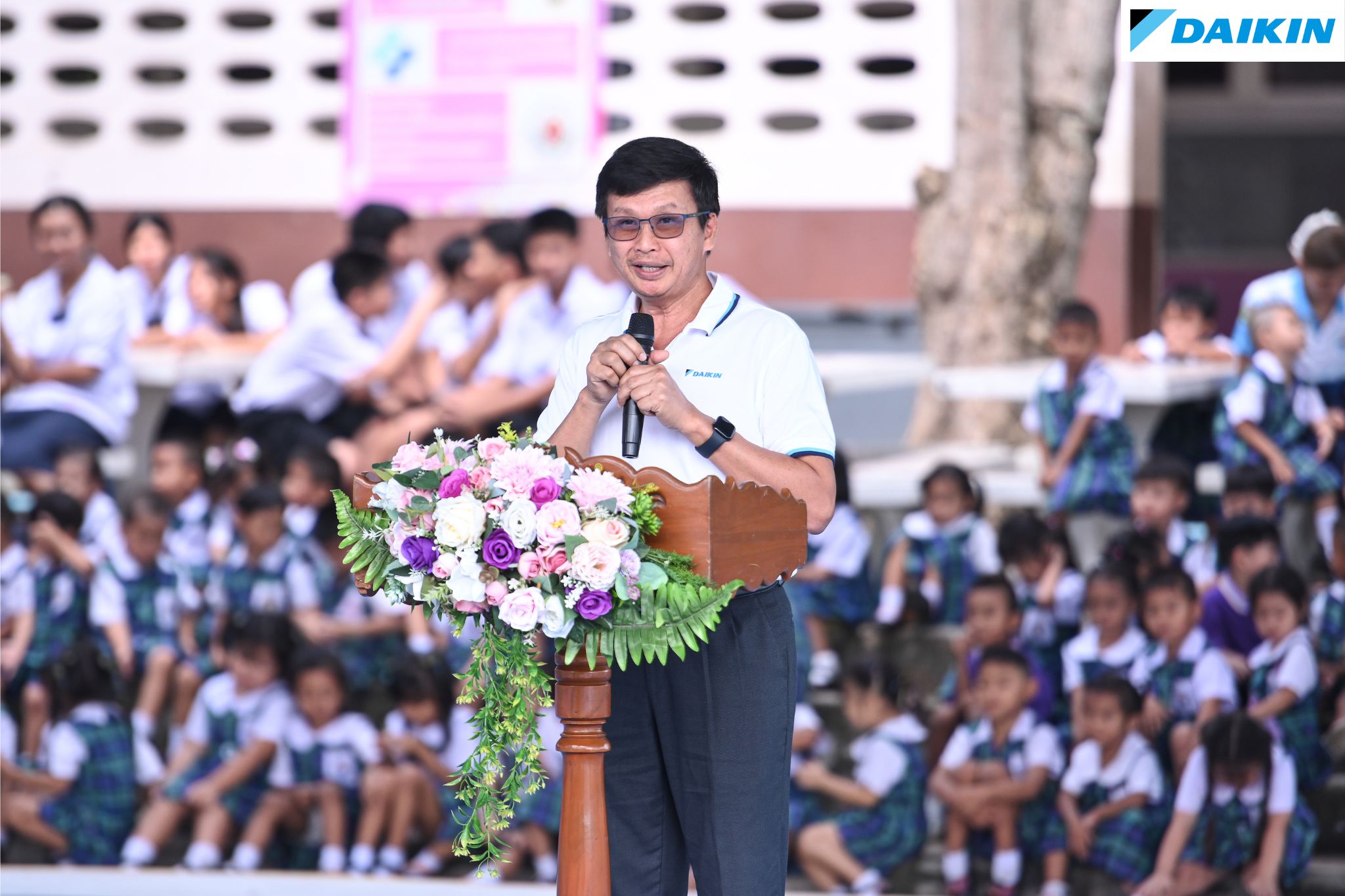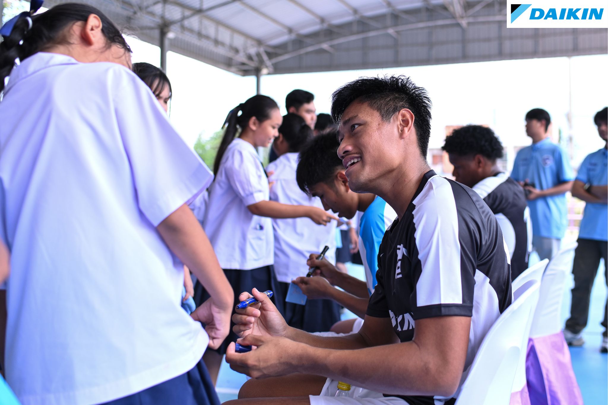 “The sports field completed today not only enhances the overall aesthetics but also reflects the vision and commitment to providing a high-quality and beneficial sports facility for the school. This has been the continuous intention of Daikin Industries (Thailand) Ltd., as demonstrated by their ongoing support of Chonburi FC. I hope that the sports field and today’s activities will inspire the children to develop positive energy and dedication in their training. Now, with a beautiful, well-equipped sports field that supports a variety of sports, the youth of the Bowin community and surrounding areas have the opportunity to train here and pursue their dreams of becoming professional athletes in the future” said Mr. Wittaya Khunpluem.