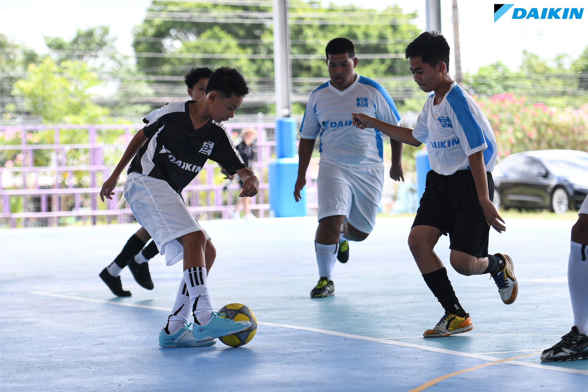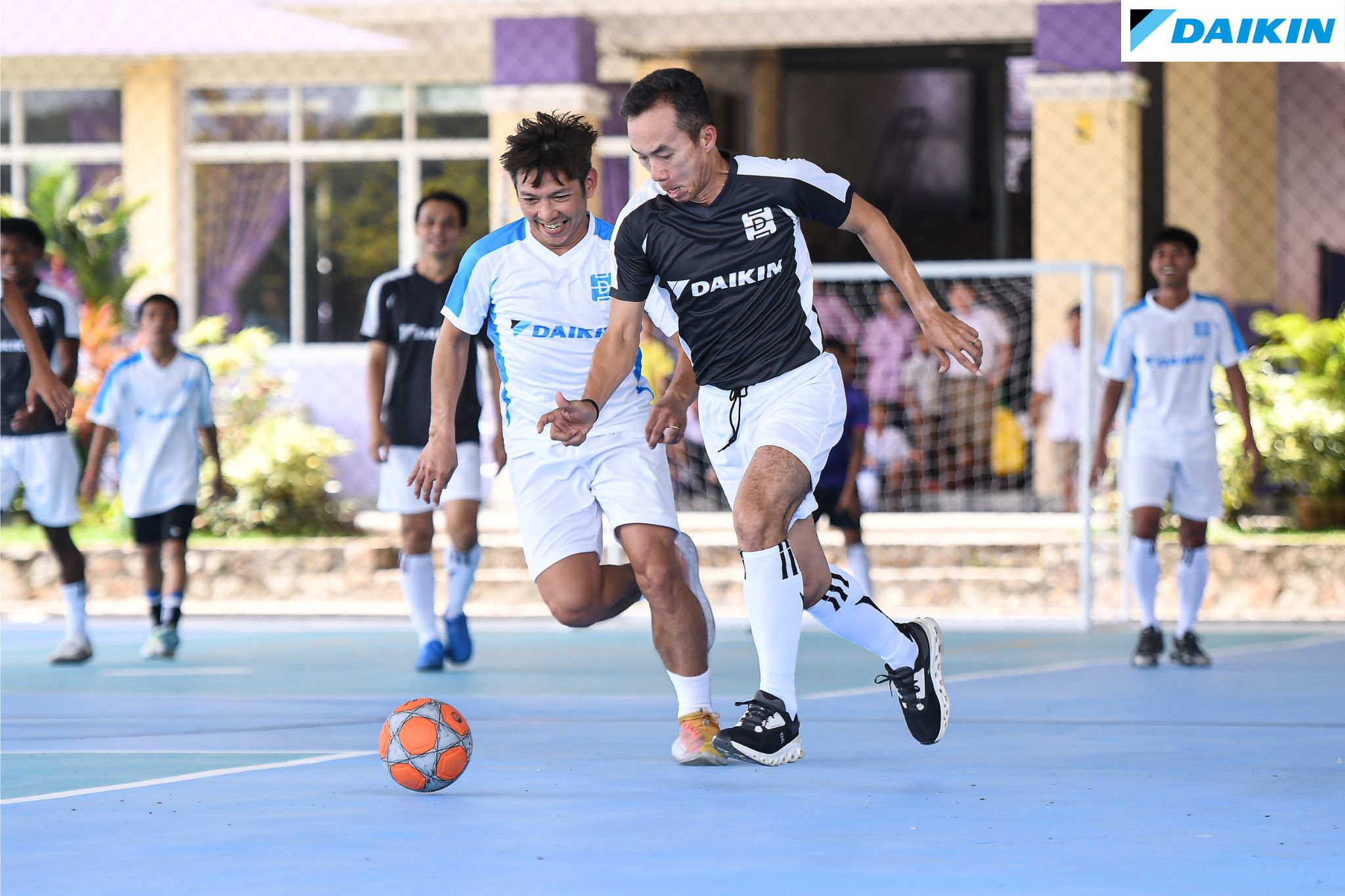 On September 2, 2025, Daikin Industries (Thailand) Ltd. held the official opening ceremony of its new sports field. The event was honored by the presence of Mr. Wittaya Khunpluem, Chief Executive of the Chonburi Provincial Administrative Organization, Mr. Wallop Phungphairoj, Director and Senior General Manager of Daikin Industries (Thailand) Ltd., and Ms. Kanokrak Suwan, Director of Ban Bowin School, who jointly presided over the opening ceremony. The event also featured a friendly futsal match, with special participation from 3 players of Chonburi FC; Mr. Channarong Promsrikaew, Mr. Jefferson Tabinas and Mr. Suksan Boonta. In addition, there was a sepak takraw match between the Daikin team and Ban Bowin School’s team, aimed at promoting sports activities and fostering unity within the community.
