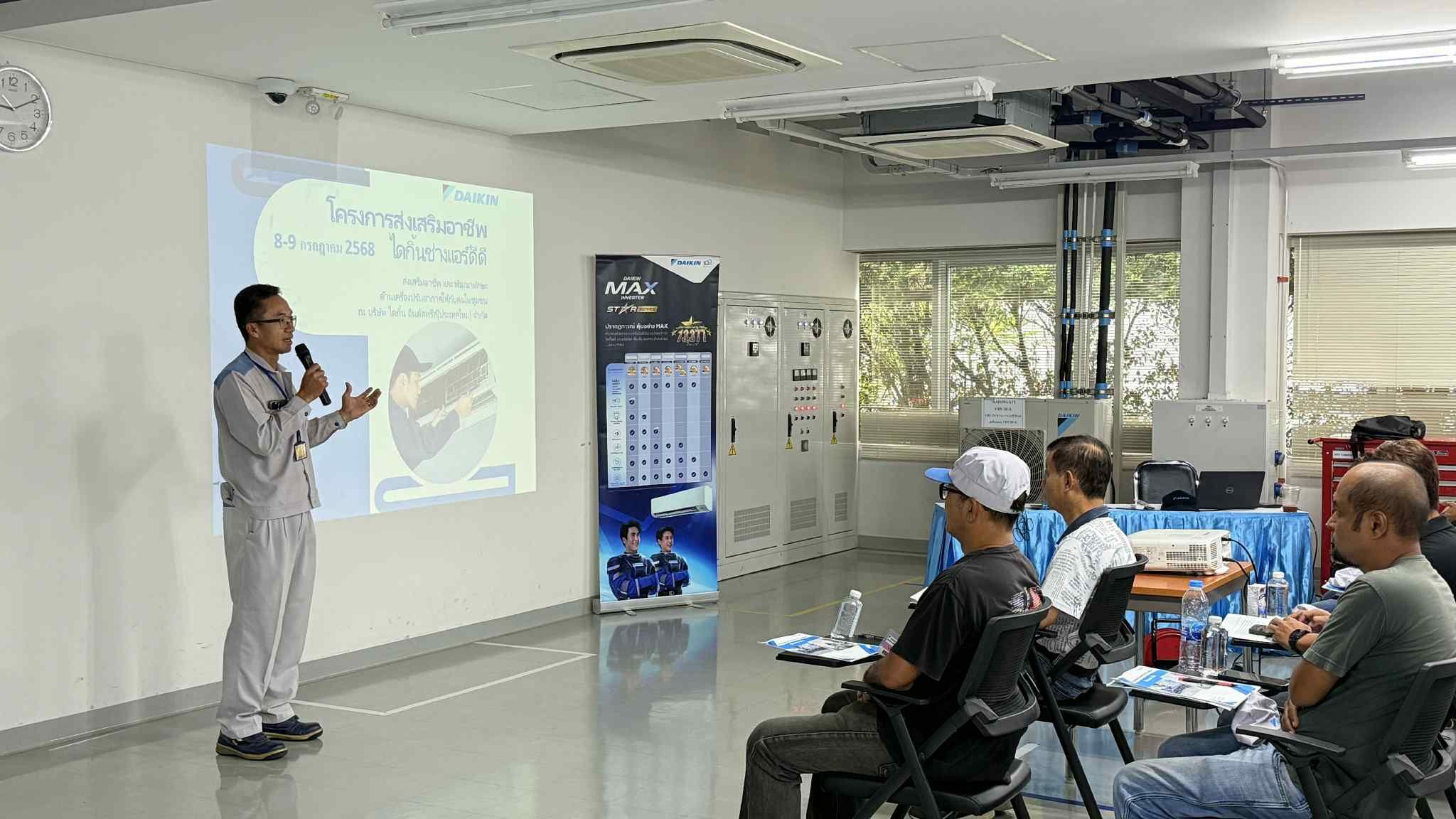 โครงการนี้จัดขึ้นระหว่างวันที่ 8 – 9 กรกฎาคม 2568 ณ อาคารศูนย์ฝึกอบรม บริษัท ไดกิ้น อินดัสทรีส์ (ประเทศไทย) จำกัด โดยมีทั้งภาคทฤษฎีและภาคปฏิบัติตามหลักสูตรการซ่อมบำรุงและการล้างเครื่องปรับอากาศที่ออกแบบมาเพื่อเสริมสร้างความรู้ ความสามารถ และทักษะเชิงเทคนิคอย่างเข้มข้น เพื่อให้ผู้เข้าอบรมสามารถนำไปต่อยอดประกอบอาชีพได้จริง สร้างรายได้อย่างมั่นคง และยกระดับคุณภาพชีวิตของคนในชุมชน