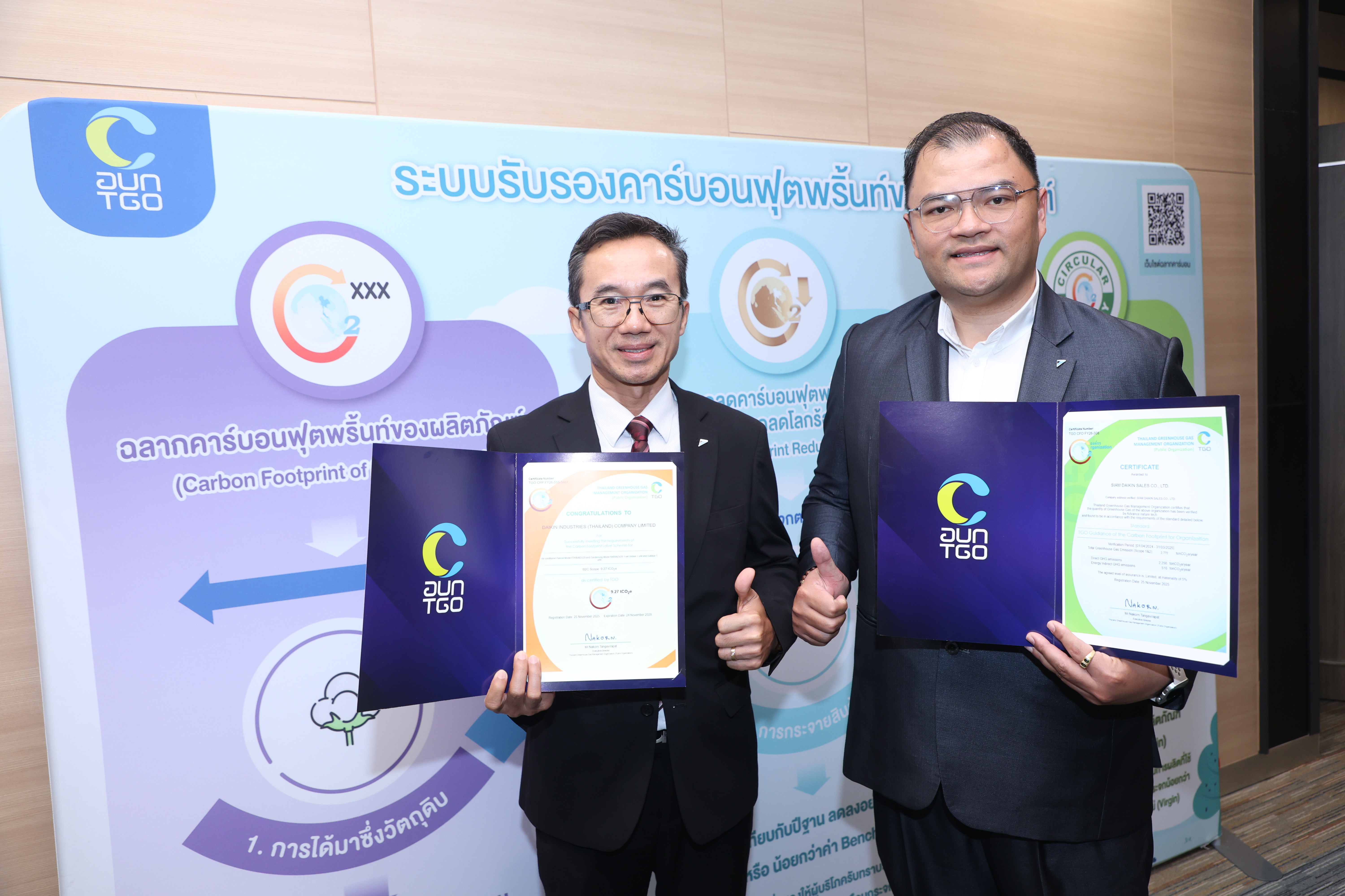 ไดกิ้นรับ 2 เครื่องหมายรับรองฉลากคาร์บอนจาก อบก. ตอกย้ำผู้นำนวัตกรรมระบบปรับอากาศ