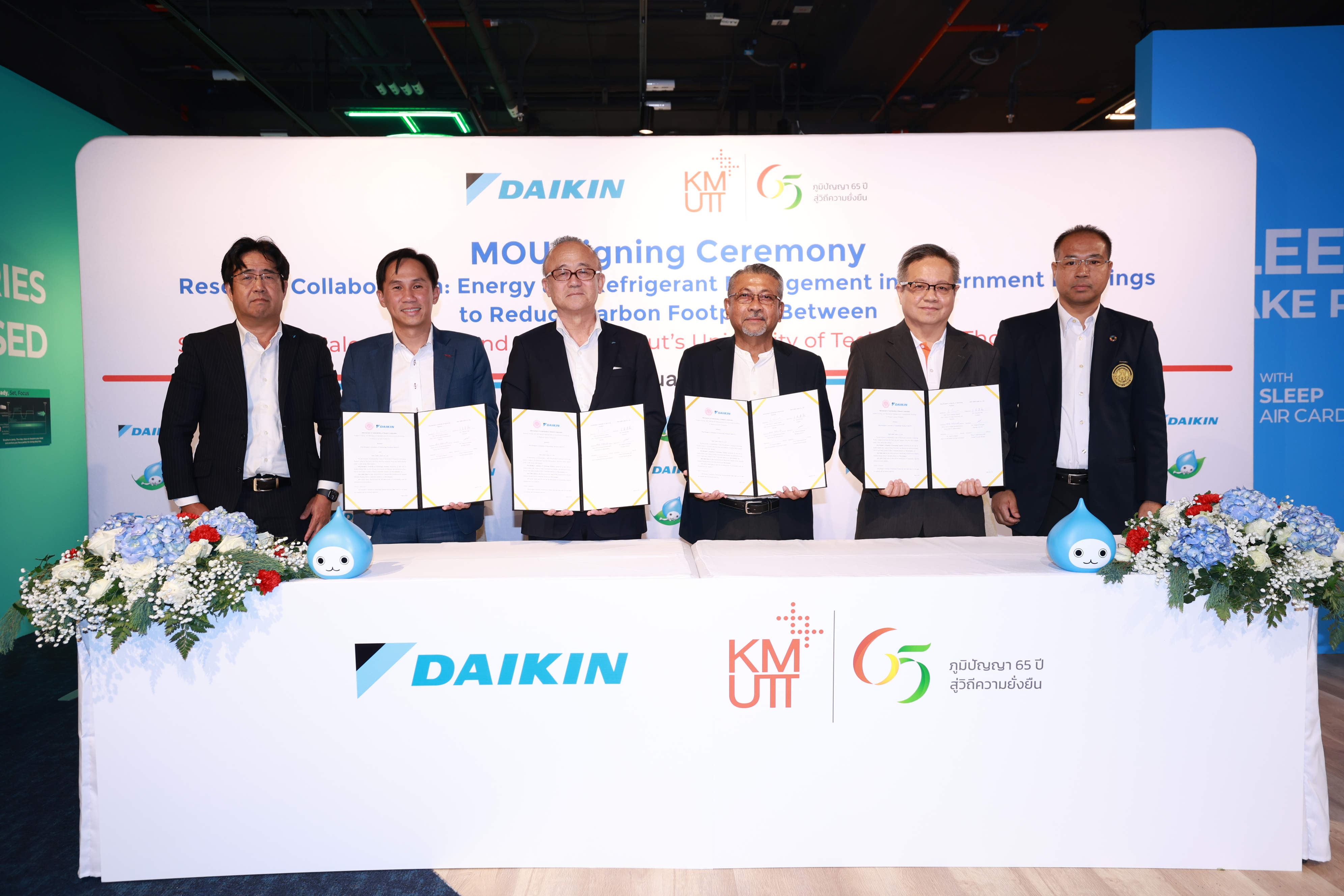 บริษัท สยามไดกิ้นเซลส์ จำกัด และมหาวิทยาลัยเทคโนโลยีพระจอมเกล้าธนบุรี (มจธ.) ร่วมลงนามบันทึกข้อตกลงความร่วมมือด้านการวิจัย (MOU) เพื่อขับเคลื่อน “การศึกษาวิจัยเรื่อง การจัดการพลังงานและสารทำความเย็นในอาคารภาครัฐเพื่อลดคาร์บอนฟุตพริ้นท์ของอาคาร” พร้อมยกระดับเป้าหมายด้านความยั่งยืน (Sustainability) โดยมอบ “อากาศที่ดี” ร่วมกับ “พลังงานที่มีประสิทธิภาพ” ผ่านการวิจัยและพัฒนาเทคโนโลยีที่ช่วยปรับปรุง IAQ ควบคู่การออกแบบและควบคุมระบบปรับอากาศให้ใช้พลังงานอย่างคุ้มค่า พร้อมยกระดับแนวทางการควบคุมมลพิษอย่างยั่งยืนในระยะยาว ให้สอดคล้องกับเป้าหมายด้าน Carbon Neutrality และการลดการปล่อยก๊าซเรือนกระจกที่กำลังเป็นวาระร่วมขององค์กรทุกภาคส่วน