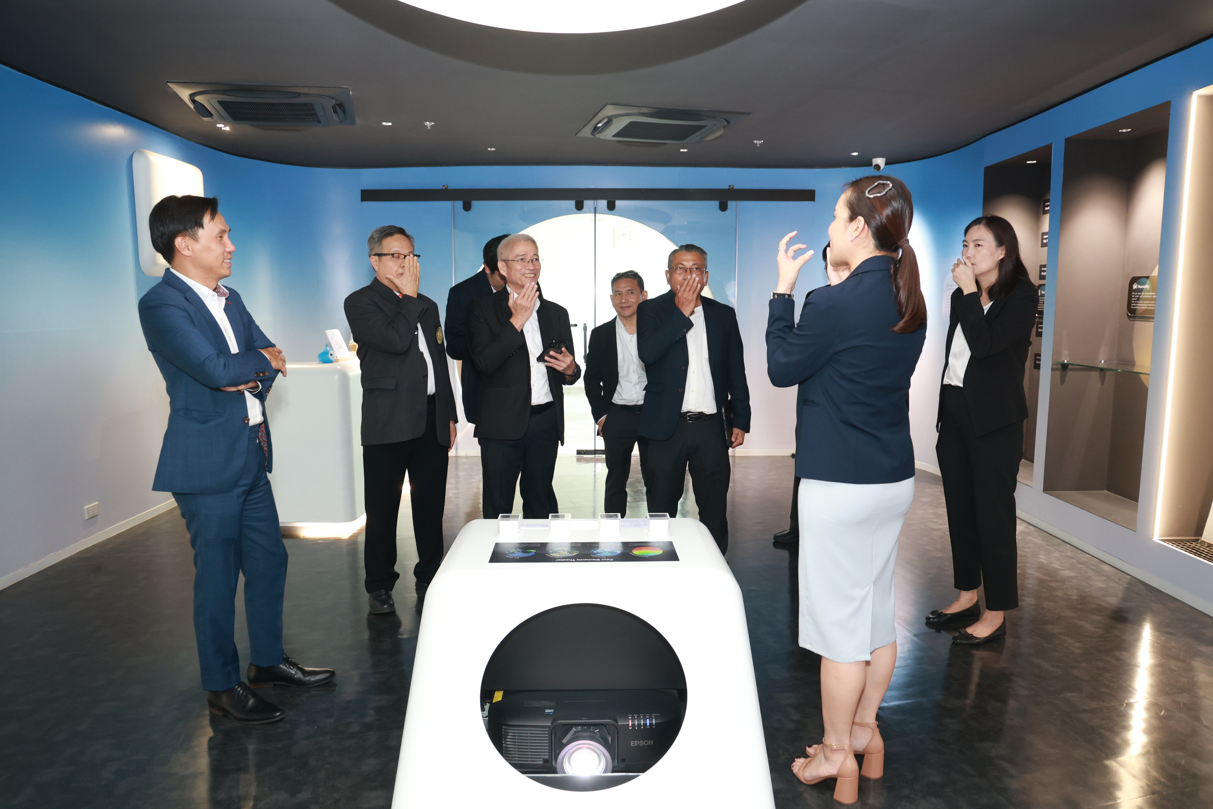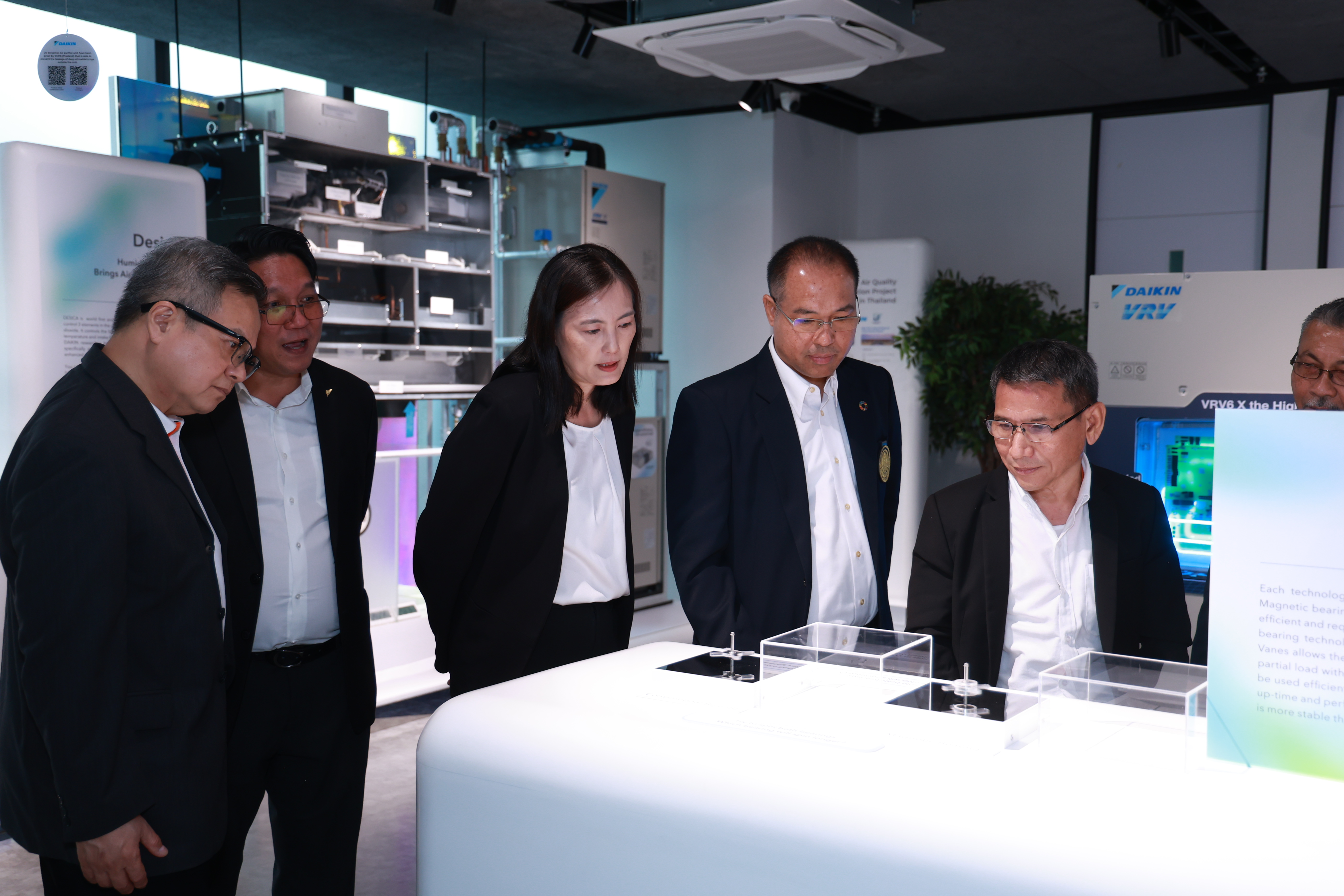 นอกจากนี้ คณะผู้บริหารและผู้แทนจากคณะพลังงานสิ่งแวดล้อมและวัสดุ มจธ. ได้เข้าเยี่ยมชมศูนย์แสดงนวัตกรรมและเทคโนโลยีระบบปรับอากาศ Daikin Solution Plaza Fuha: SIAM ซึ่งเป็นพื้นที่ที่ถ่ายทอดมุมมองการจัดการด้านอากาศ ในแบบที่จับต้องได้ ผ่านนวัตกรรมและองค์ความรู้เกี่ยวกับระบบปรับอากาศที่ถูกเล่าให้เข้าใจง่าย และทำให้เห็นภาพการผลักดันอากาศสะอาดตอกย้ำแนวคิด Perfecting the Air ของไดกิ้น จากมุมวิชาการมาสู่โลกการใช้งานจริงให้ชัดเจนมากขึ้น
