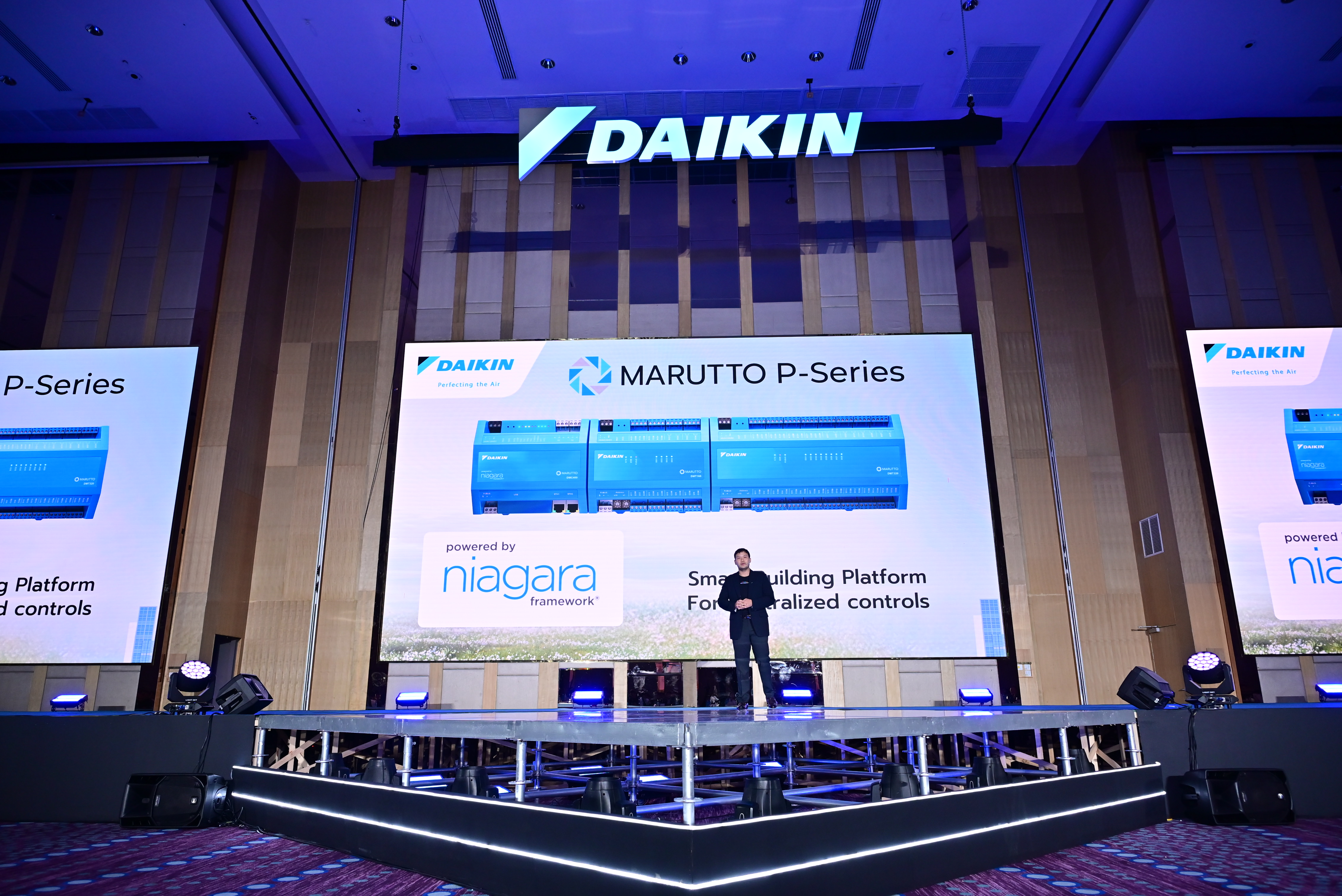 สำหรับกลุ่มเครื่องปรับอากาศขนาดใหญ่ ไดกิ้นนำเสนอ Marutto P Series โซลูชันบริหารอาคารแบบครบวงจร ที่ครอบคลุมทั้งระบบปรับอากาศ การจัดการพลังงาน ระบบส่องสว่าง ระบบรักษาความปลอดภัย และระบบสาธารณูปโภคต่าง ๆขณะเดียวกัน ไดกิ้นยังพัฒนาโซลูชันสำหรับ Data Center เพื่อตอบรับการเติบโตของเทคโนโลยี AI โดยเฉพาะ ประกอบด้วยเครื่องทำน้ำเย็นและระบบส่งลมเย็นสำหรับเซิร์ฟเวอร์ ที่เน้นเสถียรภาพสูงและการใช้พลังงานอย่างมีประสิทธิภาพ เพื่อสนับสนุนการเติบโตอย่า งยั่งยืนในอนาคต